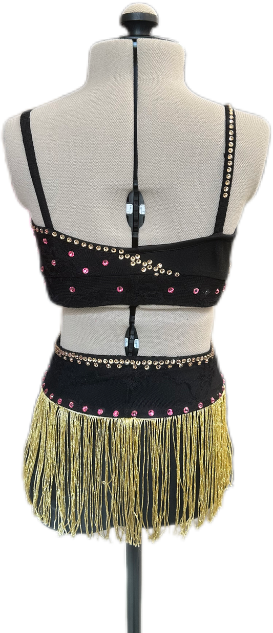Black & Gold Crop Top & Brief with Fringe Skirt
