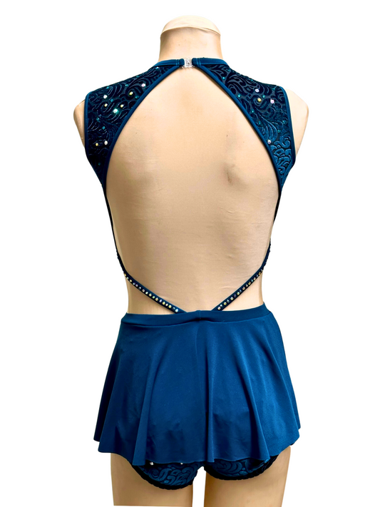 Paisley Velvet 2-Piece Dance Costume - Teal