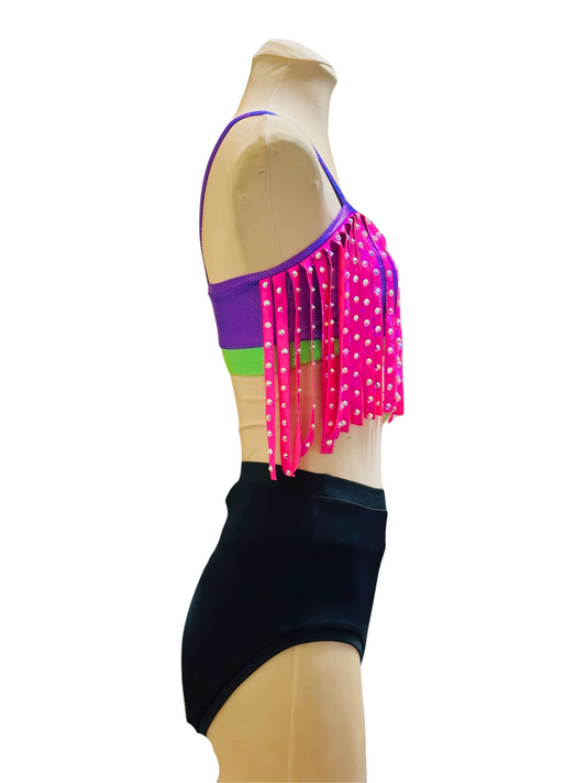 Shimmy & Shake Fringe Crop Top & Brief Set - Purple
