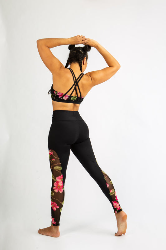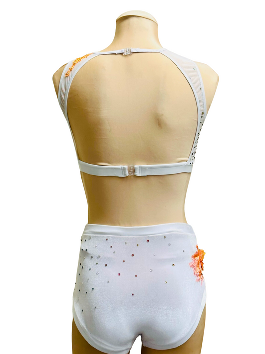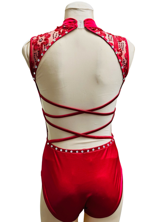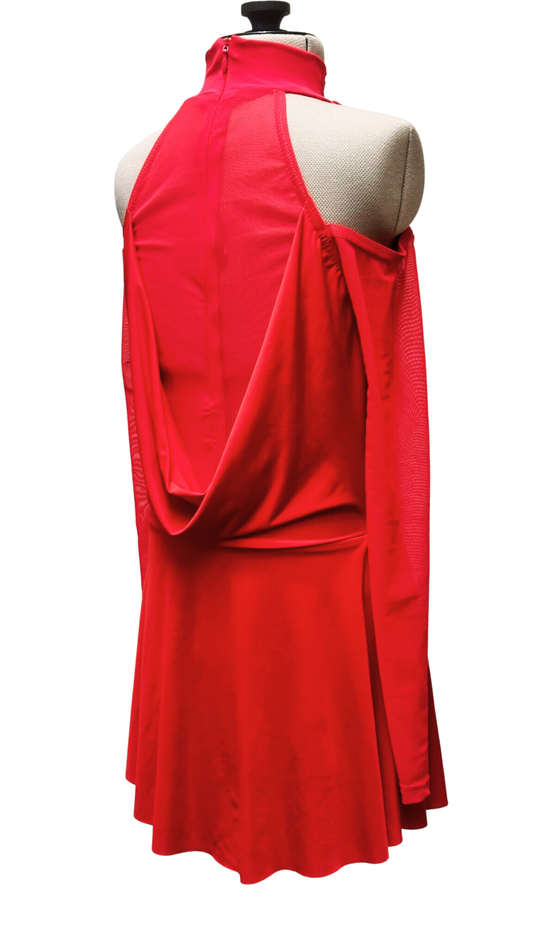 Red Cold Shoulder Dance Costume with Floral Applique and Mesh Details